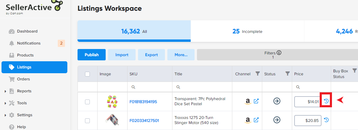 If you do not see a magnifying glass icon on your listing then that specific listing may have never had a pricing strategy attached to it OR there has been a lack of market data gathered for that listing (even with a pricing strategy being assigned). This could happen if your item has been inactive/out of stock on the sales channel.