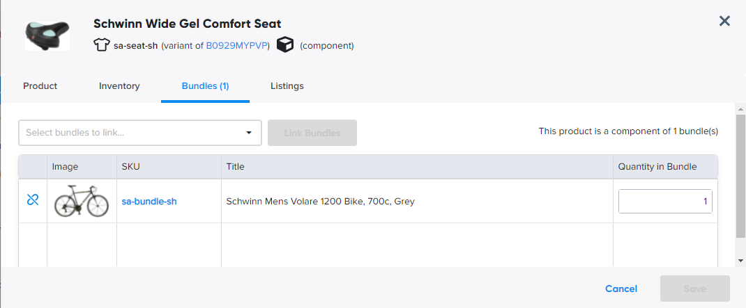 Bundles can also be made for mismatched SKUs. If SKUs are different between various channels, customers can “link” them as a bundle, to connect them in a 1-item to 1-item relationship, under a single SKU. That individual SKU then controls the item quantity.