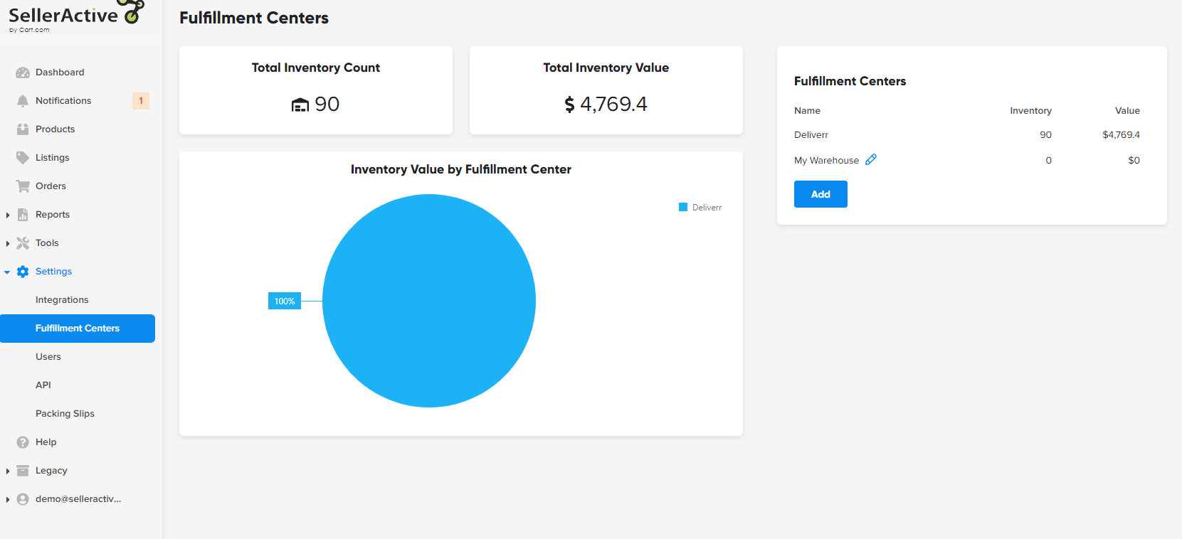 - Go to your Fulfillment Centers page under Settings -> Fulfillment Centers