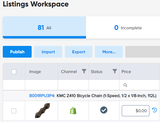 Once you have set up and prioritized your Fulfillment Centers, you may quickly see on the Listings Workspace, which Fulfillment Center has priority for a listing by viewing the "FC Priority" column. The FC Priority will also determine the "Listing Qty" that is sent out to that channel. To see these columns, select the column chooser icon to drag additional columns to your view.