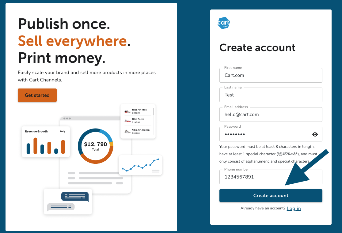 - Navigate to console.cart.com in your browser and click "Create Account":