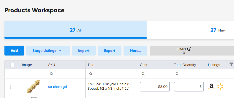 It's important to add an Amazon and Walmart category for each new product, because this category information will help you eventually list the product to Amazon and Walmart.
