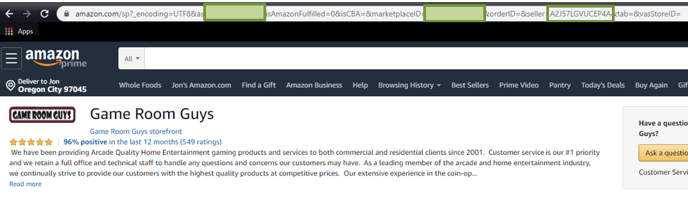 3. Once on this page, isolate the ID near the end of the URL in your browser window. It will be the string of characters following “seller=” and before “&tab” typically. You will copy this value and add it within your Amazon Pricing Strategy settings