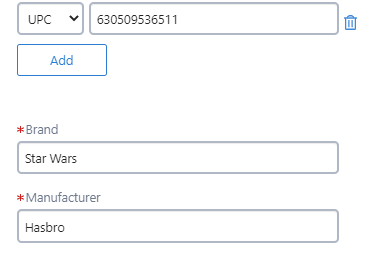 - You can remove the UPC on a product level by selecting the trash can icon within the Product tab