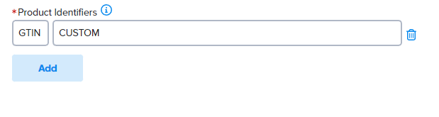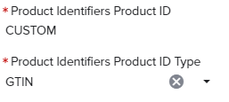 - For Walmart, you'll need to use GTIN as the Product Identifier and input "Custom" as the Identifier value.